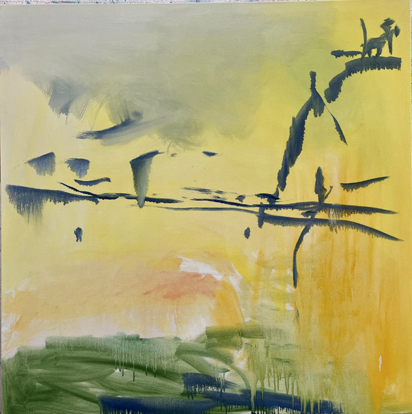 Aprikosmoln, olja på duk, 100x100cm, 2024